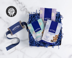 A curated selection of four of our best-selling nut blends makes the perfect gesture. Give the gift of healthy decadence with a gorgeous gold tin filled with a quarter pound each of our most loved flavors: